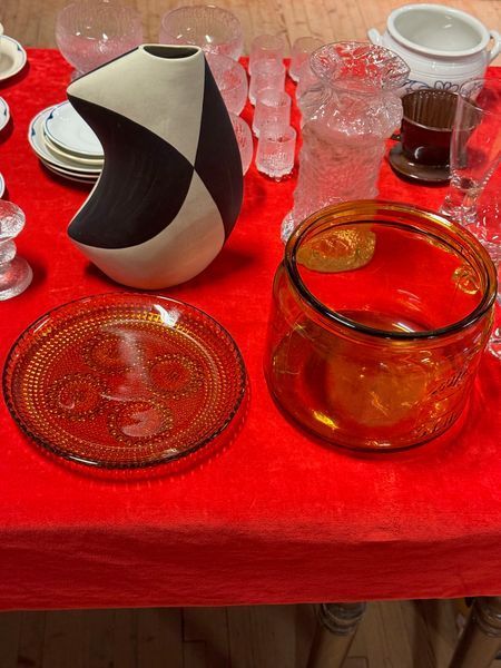 Huutokaupassamme on myynnissä monenlaisia esineitä. Valikoima vaihtelee luonnollisesti huutokaupasta toiseen. Myymme esimerkiksi taidelasia, astioita, koruja, tauluja, design-huonekaluja, valaisimia ja työkaluja. Korkein huuto voittaa, kuten huutokaupassa tapana on, ja saat esineen heti mukaasi.